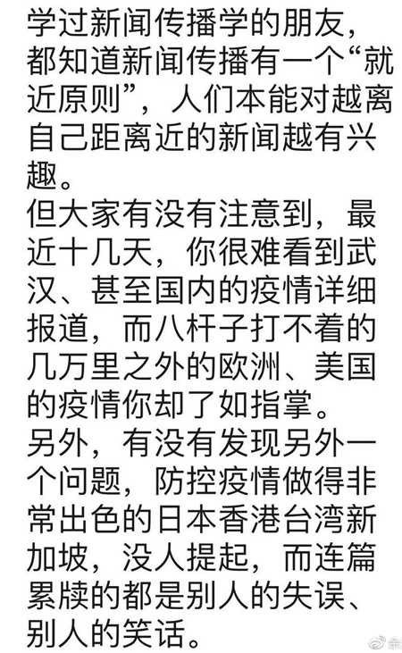 有意思的是,“甩锅”升级到国家层面了,武汉也好,专家组也好,受到的压力和质疑大大减轻,好像与他们无关了——人们好像已经忘了,这本来是一场可以提前预警、提前防范、也有可能被控制在小范围的病毒疫情。