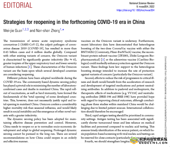 钟南山等人在NSR发表的论文