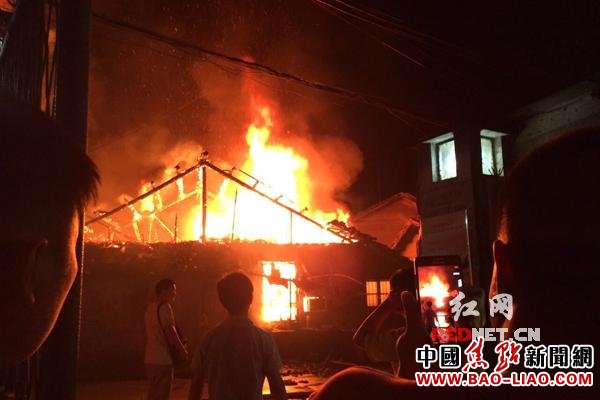 (凌晨附近居民拍摄的火灾现场图)