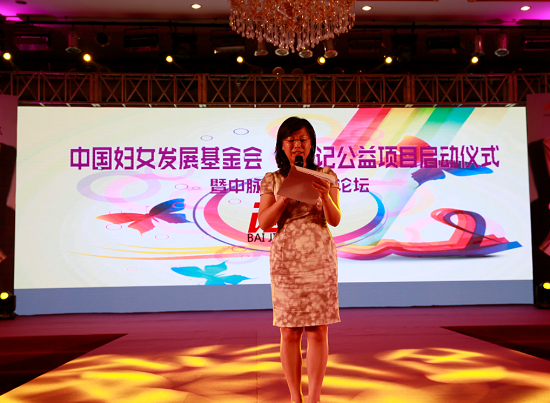 香港新闻集团中国区执行董事、香港中国新闻评报国内社社长、百记公益项目发起人代表刘夏女士说:对我们而言,是一个非常特别的日子,经过我们的努力和奔波。同时,在中国妇女发展基金会的大力支持下,在一百多家媒体人的自动自发下,我们的“百记公益团队”化茧成蝶了。