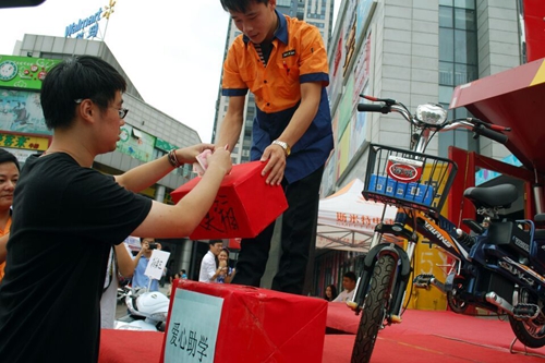 本站讯9月14日下午,驰骋天下电动车商家联合周末报镇江管理中心以及江苏科技大学经济管理学院、江苏恒强律师事务所、镇江市实验初级中学、以及各大爱心企业在常发广场举办了“大爱无疆•为贫困学子助学大型义卖活动。