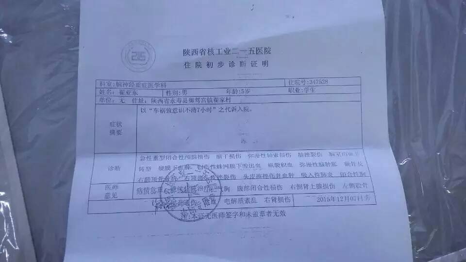 小亚东目前在咸阳215医院重症监护室,希望社会爱心人士给小亚东第二次生命,希望大家互转传递正能量。
