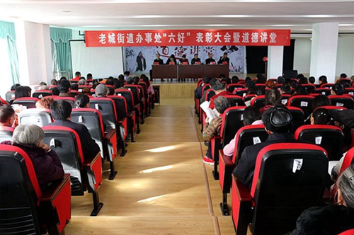 大会分“六好”表彰大会和道德讲堂两个部分进行。