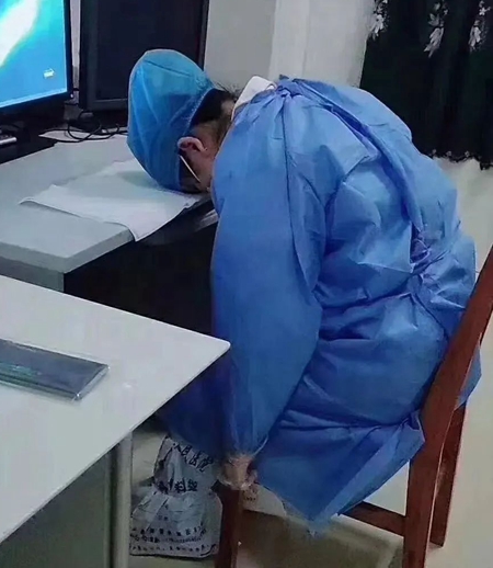 医务人员今年从大年初一就被通知紧急上班,不得休假全体来抗击疫情开始,直到现在他们就没休息过一天。