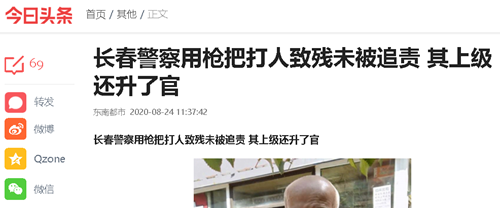 长春警察用枪把打人致残未被追责 其上级还升了官