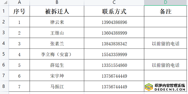 部分等待回迁户联系方式