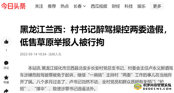 长安村村民说,卢永义醉驾已经过去八个多月了,兰西县有关部门并没有对卢书记做出党纪处分,罢免村主任的程序迟迟不启动。而早在2019年9月,卢永义就曾因漠视侵害群众利益受到党内严重警告处分,被绥化市纪委监委通报。 如今他身背处分醉驾涉罪,依然书记主任“一肩挑”“带病”行使“两委”权力,“玩”权与法的“游戏”,顶风违法、违纪的低气来自哪里?