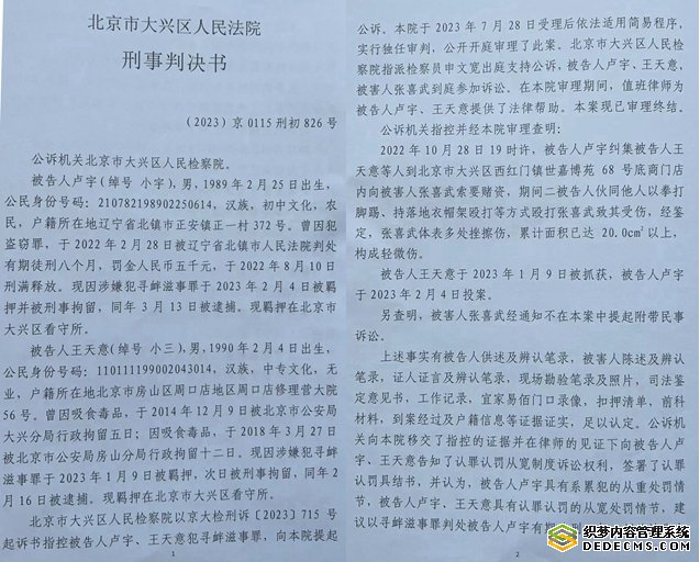 对于此案,张喜武提供的大兴区法院(2023)京0115刑初826号刑事判决书是这样认定的: