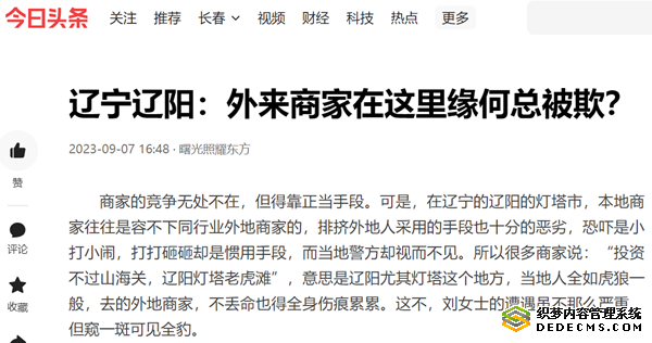 据了解,在辽宁辽阳市,尤其灯塔这个地方,外地来的商家,刘女士的遭遇只一盘小菜,更为严重屡见不鲜,当地人之所以敢如此的胆大妄为,不是他们不懂法,是有警察给他们撑腰,说白了,就是当地多年形成的环境造成的,全国都搞营商环境,辽宁的辽阳市也喊出“要当打辽沈战役来搞当地的营商环境”,可从刘女士的遭遇来看,这个地方政府的行动,恐怕只是喊个口号而已。(记者 周放)