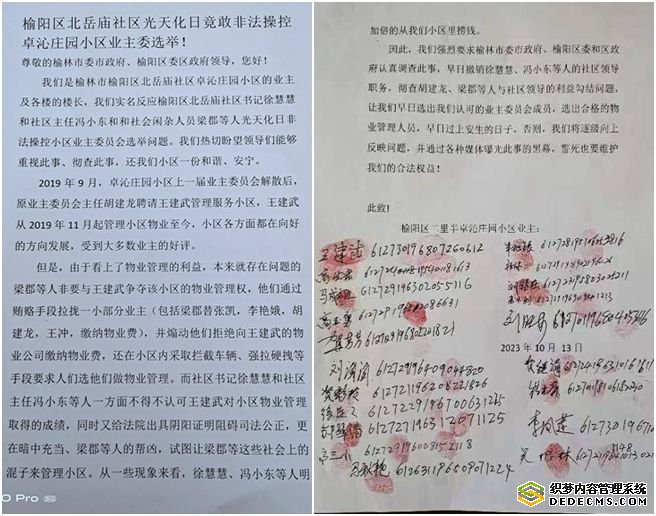 相关链接:榆阳区北岳庙社区胡作非为导致卓沁庄园小区混乱不堪的情况反映