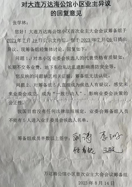 广大业主们的这些观点,本不是自己凭空杜撰,是有国家的法规法条为依据的,于是,他们曾将自己的这些观点反映到物业上级管理部门。但是,让他们没有想到的是,他们所提出的问题,答复的却是以这几个人为牵头的“筹备组”,且每次都是这个样子,这让业主们心里十分的不舒服:“我们还没有选举你们,咋就开始行使权利了呢?”“本应政府主管部门回复的内容,怎么你们就替代了呢?”