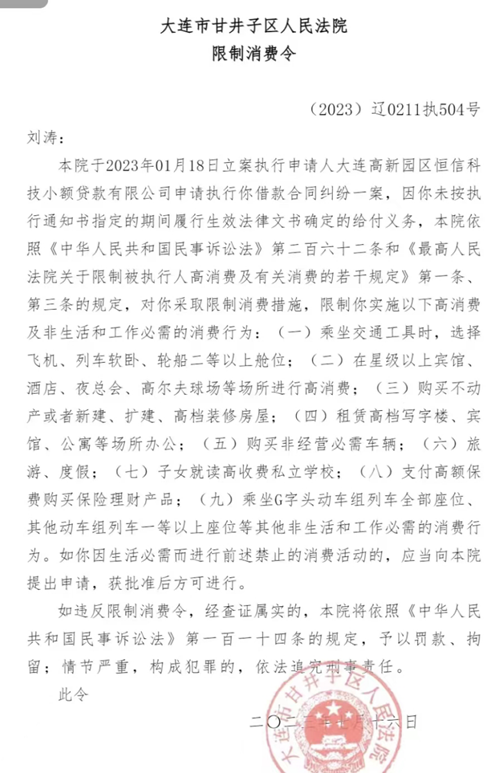 调查中,记者得知:在今年七月份,大连市甘井子区人民法院公布了关于对刘涛的限高令,内容包括不准乘高铁、飞机,不准孩子上私立学校,不准旅游等9项消费行为,这种地道的“老赖”身份,自己不仅高调地进入候选人行列,孩子还正在读一所私立学校。