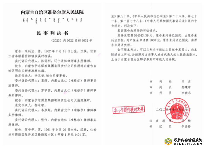 大庙渠矿隶属于大名鼎鼎的“内蒙古伊东煤炭集团”,于是朱先生以原告的身份,准备在法庭上向伊东集团讨回公道。
