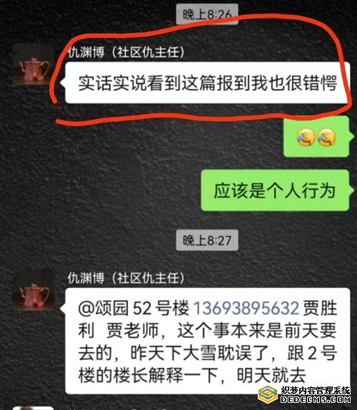 2024年2月份,大雪将至,九鼎小区道路被积雪覆盖,已经造成小区居民出行不便。三捷公司自发联系铲车为小区义务铲雪两天。将原本湿滑的道路清扫干净。新闻媒体将此行为正面曝光,宣传正能量。可此事文昌社区主任仇渊博居然说出来“实话实说看到这篇报道我也很错愕”并以虚假新闻为由,私自联系新闻媒体要求将该正面新闻下架。此行为令三捷公司上下不解。如今传播正能量也变成了虚假新闻。
