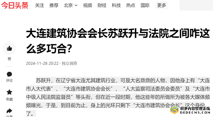 纵观近期媒体对其的报道,记者发现,他与大连市的两级多家法院,都有千丝万缕的联系,看似巧合,但有人说,实质上,双方都是利益输送的关系。