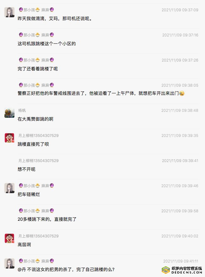 爆料称:“女的是护理部的副主任,离婚后,找了三院脑内科主任,把人家庭拆散了,然后又结婚了,生了个孩子。去武汉抗疫,她又和院长好上了,回来就又离婚了。这回发现院长又有别人了,杀了院长后女的跳楼自杀了。”