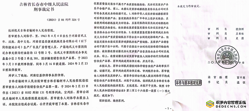 2021年9月,榆树市公安局以涉嫌合同诈骗罪立案侦查,法院随后驳回了捷诚公司提起的民事诉讼,案件自此进入刑事程序,捷诚公司实际控制人刘其范(已死亡)及生产厂长刘体学被指控销售伪劣产品罪。2024年,榆树市法院一审判决刘体学无罪,然而榆树市检察院却提起抗诉,好在长春市中级法院最终驳回抗诉,维持原判。