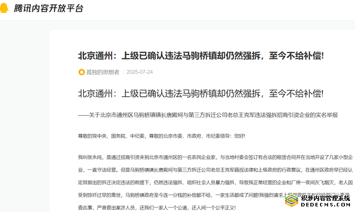 北京通州:上级已确认违法马驹桥镇却仍然强拆,至今不给补偿!