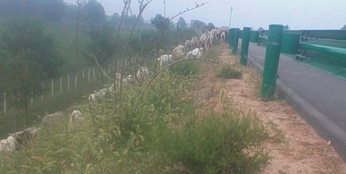 记者于2015年8月28号 前往邯大高速大名县王村乡西店村北边调查时,发现羊群正在高速公路护栏内吃草,羊群已经到了高速公路护栏内最高处了,再往上就是高速公路紧急停车道了。记 者看着羊群十分危险,随即拍照并赶羊群下去,在高速公路护栏内放羊,实在是太危险了,希望有关部门能够及时维修倒塌损坏的护栏,这样才能使孩子不上高速公 路玩耍,放羊人不再去高速公路护栏内放羊。