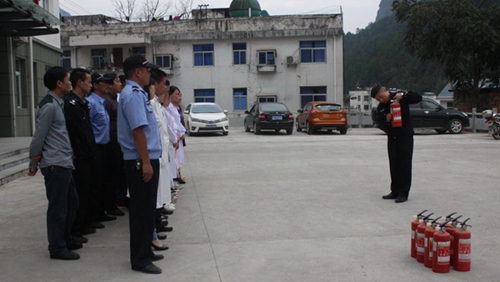 本站讯(通讯员邹厚虎 向险峰 谭行) 为进一步强化干部职工消防安全意识,提高对火灾等突发事件的应急处置能力,致力创建平安和谐医院,9月30日下午,湖北省秭归县九畹溪镇卫生院成功举行了消防应急演练。在演练现场,九畹溪镇派出所警官谭行向参练人员讲解了有关消防知识以灭火器的使用方法,并现场演示了干粉灭火器的使用步骤,随后医院保安架设了火堆,参练 人员人人动手,使用干粉灭火器进行现场演练。通过实际操作和现场练兵,给大家上了一堂生动直观的消防知识培训课,所有参练人员都掌握了遇险应急疏散和使用 灭火器的方法步骤。