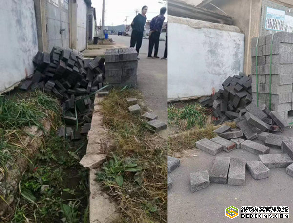 清原县南山城镇政府“美丽乡村”建设项目在施工过程中为何没有设置围栏?为何在堆放建筑材料周边不设警示标识?