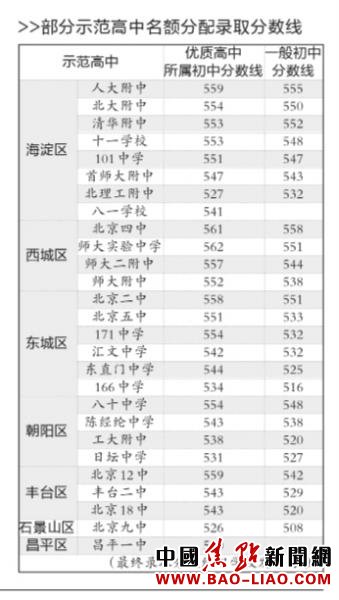 16日,北京中招名额分配录取结束,30余所学校公布了名额分配录取的两条分数线。今年,海淀的多所学校分数线低于去年,东城区的优质高中分数线普涨。