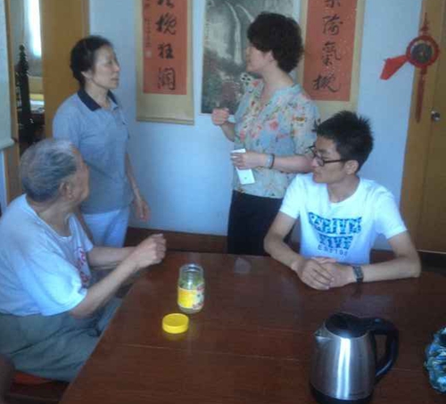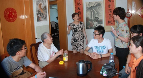 经济管理学院八名志愿者代表带着爱心水果及全校师生的心意来到了尚友社区在社区金茜带领下志愿者来到老红军宋波家中。宋波对志愿者的到来感到非常高兴,热情地给志愿者讲革命故事,老人讲述的亲身经历深深的吸引了在场的志愿者们。