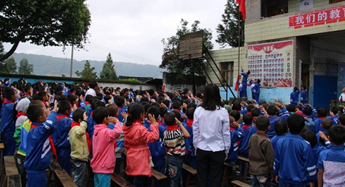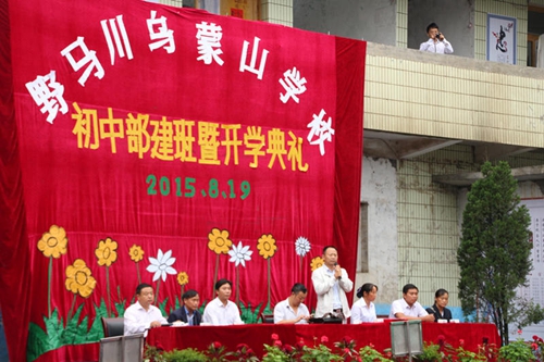 贵州资讯网讯 (记者 李才武)8月19日 早,在贵州省赫章县野马川镇山脚村,随着威严的国歌奏响,鲜艳的五星红旗冉冉升上高空,贵州三联教育集团旗下的赫章野马川乌蒙山学校开学典礼从烟花弥漫的 云间落下重大喜讯:作为集团发祥学校,在乌蒙山学校迁往赫章六曲河镇老场坝村,初中部完全随迁,野马川乌蒙山学校初中部随之“断电”的情况下,经对农村留守儿童家庭做大量社情调研,野马川乌蒙山学校校长,赫章有名的“校长妈妈”周遵国大力争取再建初中部。