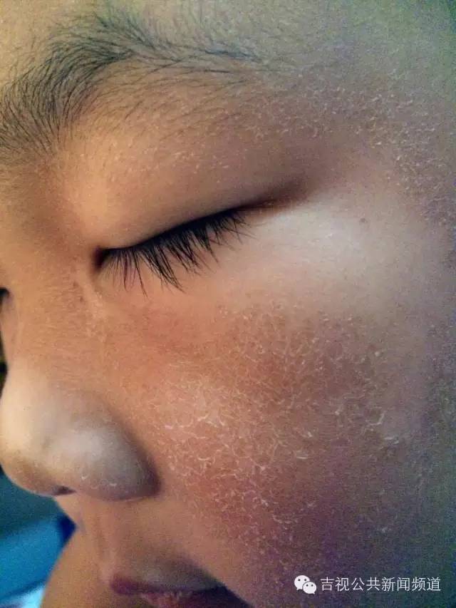家长:孩子脸上白的地方都是掉完皮的,深色的皮都是还没掉的。