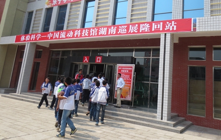 本站讯 11月2日,隆回县九龙学校的体艺馆里格外热闹,中国流动科技馆湖南巡展隆回站就设在这里。流动科技馆走进九龙校园,“无弦琴”、“椎体倒转”、“人体导电”等新颖的科普展品让同学们既大饱眼福,又体验了科学带来的无穷乐趣。