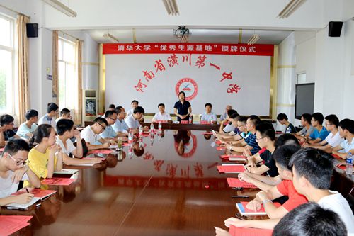 图一:清华大学“优秀生源基地”授牌仪式在潢川一中隆重举行