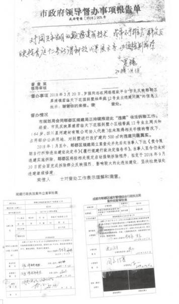 成都市市长罗强批示:“对周兴和发明的颠覆建筑技术,我市不予推广,群众反映桂香庭十二号所谓科技成果展示房,必须强制拆除”。