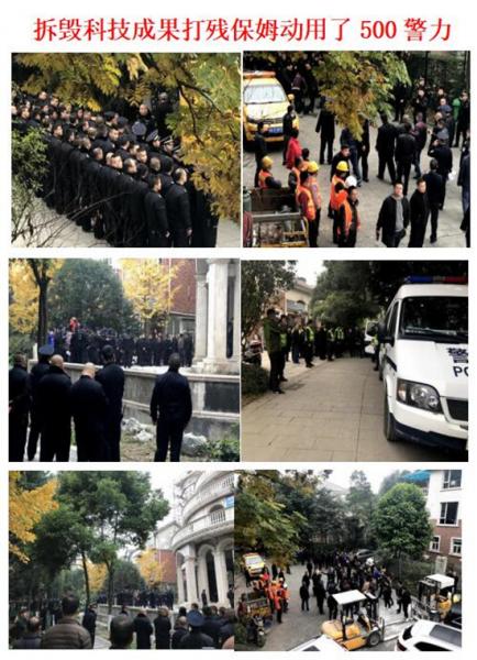 成都郫都区区委书记杨东升居然动用500警力强制拆毁科技成果展示房,并打残发明人家的保姆,致其丧失劳动能力,无处伸冤。