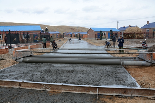 图为街巷硬化工程施工现场。
