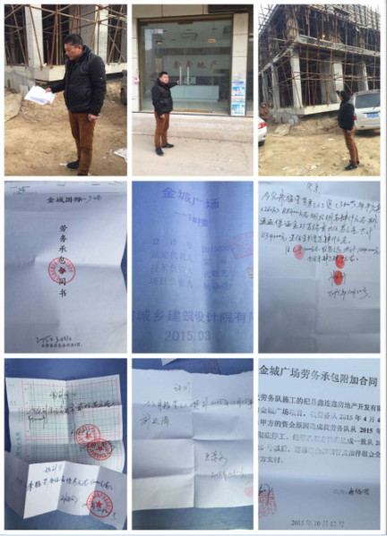 当本刊了解相关杞县金城广场项目时。朱某介绍称,本身是盖20层的,现在盖到三层,开发商资金出现了问题。朱某为了让工人和本刊工作人员相信,拿出了一份《金城广场劳务承包附加合同》内容显示自2015年7月20号以后,塔吊租金和钢管及扣件租金全部租金由甲方支付。朱某一边聊关于自己的满腹委屈,一边跟工人解释自己的难处,到目前为止,开发公司一直说正在筹集资金,自己也没拿到钱。合同书,欠条,保证金收据,全是一打白条子。