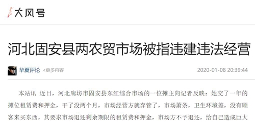 本站讯 近日,河北廊坊市固安县东红综合市场的一位摊主向记者反映:她交了一年的摊位租赁费和押金,干了没两个月,市场经营方就弃管了,市场萧条,卫生环境差,没有顾客来买东西,其要求市场退还剩余期限的租赁费和押金,市场方不予退还,给自己造成巨大的损失。该摊主还反映,该市场手续不全,属于违规经营,该市场老板又在县城开了一家“初林农贸市场”,那个市场也是违建工程,属于违法经营。