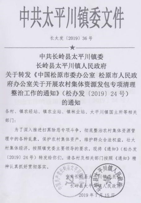 对此,赵渊自述吐苦水,他说:吉林长岭县太平川镇将他当年承包盐碱地改良地块划入“三资”清理范围,更让他无法理解的是,在1995年,他是花了700万元“天价”承包费承包的盐碱地改良,如今他手里的《承包合同》上还加盖有长岭县太平川镇和铁西村委会的大红印章,承包期限还没有到,却因铁西村委会按图索骥涉嫌生搬硬套按照“长农清组(2019)1号”文件被一刀切进清理范围。