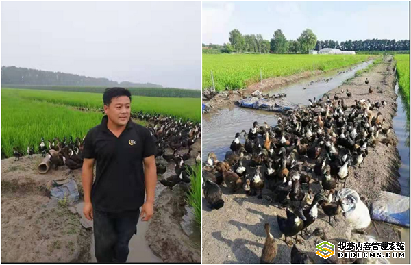 据单青东介绍,德惠市所处地理位置得天独厚,饮马河孕育了黑土地,简直就是耕地中的大熊猫。有着这样的地理优势,单青东就产生了一种想法,鸭稻鱼共作的生态循环种植模式。于是,单青东租赁了的10公顷的水稻,开始实施鸭稻鱼共作的模式,采用鸭稻鱼共作的循环利用,稻因鱼鸭优,鱼因稻而肥,鸭因稻而壮。鸭子除草除虫,不用农药除草,鱼吃了稻田里的害虫,长得肥,鱼和鸭排出的粪便,成为滋养稻谷的肥料,实现了鸭稻鱼共生、共赢。