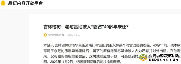 本站讯 吉林省榆树市华昌街道南门村三组的王永林是个老实巴交的农民,40多年前,他本家哥哥王永芝的房屋异地重建后,留下的原有房屋宅基地被人占为己有并对外出租。在他看来,父母和哥哥相继去世后,这块地理应属于他,可是他到村里和街道反映多年也没有追回。2023年11月2日,记者接到投诉后前往榆树调查。