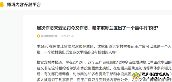 本站讯 在黑龙江省哈尔滨市呼兰区,沈家街道大罗村村书记王广良可以说是一个人物,一个被村民们反复多次举报都没有扳倒的人物!