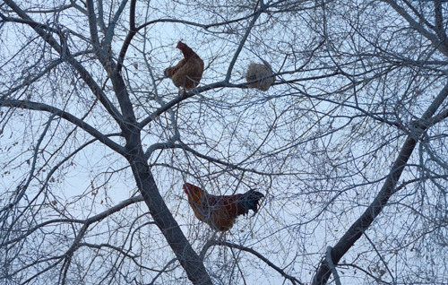 内蒙古扎兰屯:鸡在大树上“搭床” 睡觉