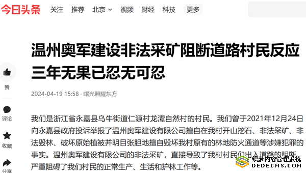 相关文章:浙江永嘉:村民出行道路因非法开采被封嫌疑人至今未受刑责?