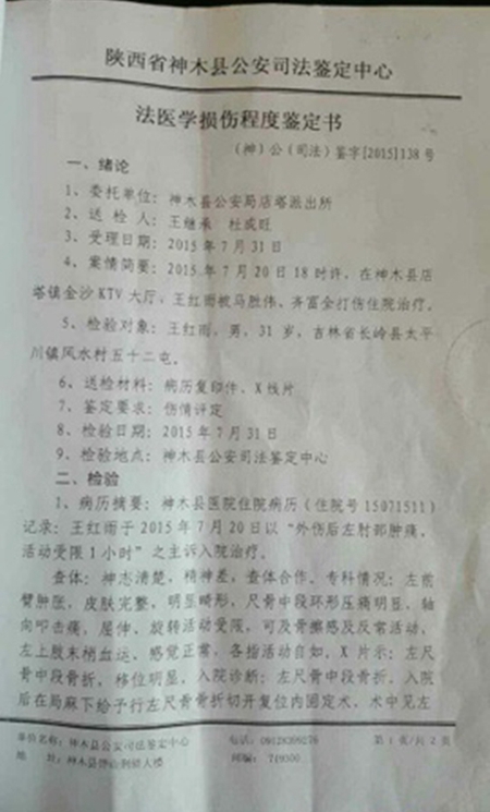 我是王红雨,手机号,15071304444,现在实名举报神木县店塔镇马胜伟,他涉嫌开设赌场罪、抢劫、非法拘禁、故意损坏财务、寻衅滋事、聚众斗殴、 暴力讨债、故意伤害、暴力垄断店塔镇啤酒市场无人敢管。具体事实举报如下:2015年1月至4月,马胜伟和他的几名手下在店塔正在装修的金沙KTV暴力讨 债,将我拘禁扣押殴打,导致我左臂骨折,多处轻伤。同时马胜伟等抢走我的金项链、金戒指,非法扣压我价值30多万越野车和车内30多万重要票据,并逼迫我 给他打下20多万的欠条及车辆买卖协议,又指使他的手下将我三哥的越野车砸毁。就此事,我多次到店塔派出所和神木刑警队去报案却无人受理,可想而知马胜伟 在店塔镇及神木根基有多深。马胜伟在2010年将店塔镇人大代表王翠娥捅伤并入狱,于2014年刑满释放,释放后并无悔改,在店塔镇疯狂敛财无恶不作。在 此,我希望有关领导及广大媒体记者介入调查,还原事实真相。目前,马胜伟正在四处花钱送礼找关系,准备办理取保候审,欲逃脱法律的惩罚。