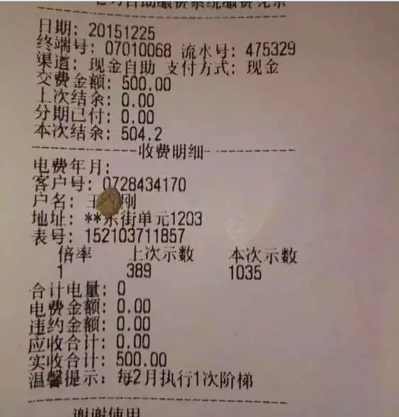 27日早,该用户前往供电局问情况时,家里就没电了,后来弄明白是被供电局停了电。因为东星小区是不久前刚换了新表,很多用户都弄不明白这电费应咋交。该用户跑了大半天,找这个找那个说明情况,多半天后给代收点送了290元才被送上电。