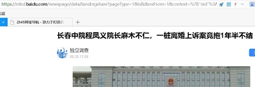 2020年1月13日,该离婚案被中止无任何进展,原告继续发表《长春中级法院程凤义院长继续纵容下属就意味着犯罪》的文章,希望多次曝光能引起相关领导关注,推动案件审理向前发展。