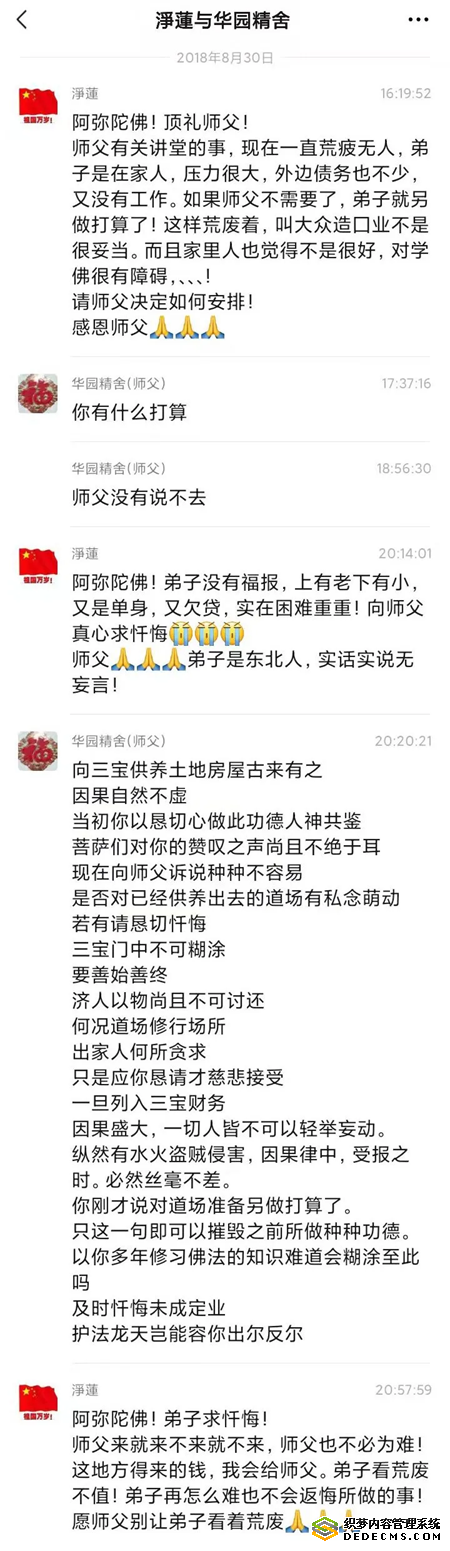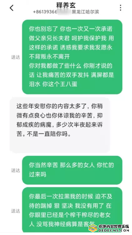以下是和受害女居士的微信对话: