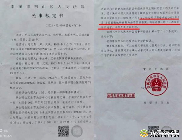 我于2021年7月22日向本溪市明山区法院对高文海、于洪提起赔偿诉讼,明山区法院民庭陈颖法官受理此案。本来是一个正常的民事案件,在评估过程中,原告按照法官和评估公司的要求提交了评估费和所有证据,但评估公司没有这项评估资质更没有业务能力对此案进行评估,故意拖延9个月之久,本溪市众合信价格评估有限公司以2022年7月15日前原告没缴纳评估费为由退回评估鉴定,但其却在2022年7月5日已经将退评文书提交到明山区法院民庭,这个时间上的错误不是偶然的!
