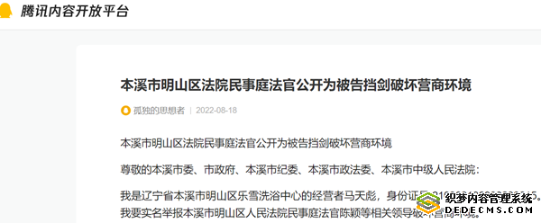本溪市明山区法院民事庭法官公开为被告挡剑破坏营商环境