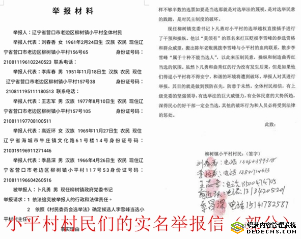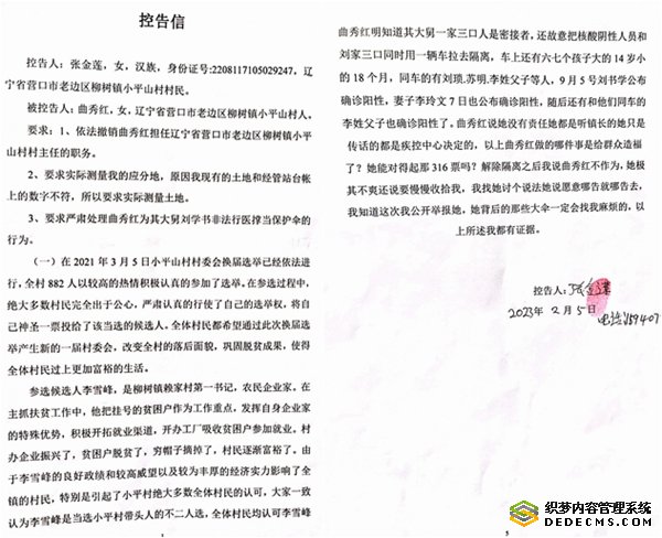 ——关于辽宁省营口市老边区柳树镇小平山村村主任曲秀红的控告信
