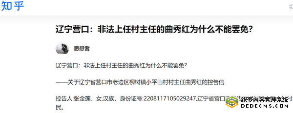 辽宁营口:非法上任村主任的曲秀红为什么不能罢免?